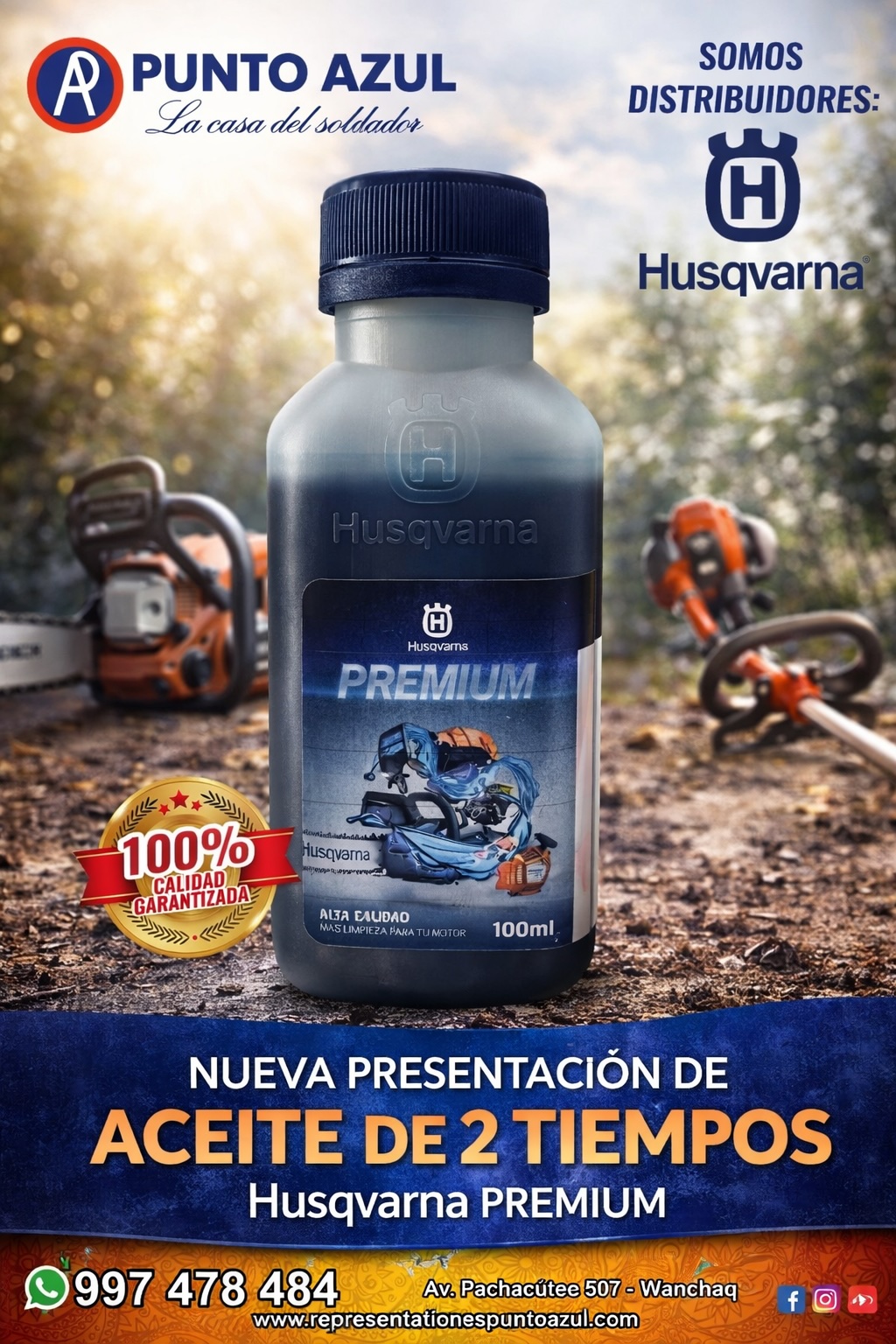 Cuando se trata de motores de 2 tiempos, la calidad del aceite marca la diferencia. En Punto Azul, recomendamos el aceite 2 tiempos Husqvarna porque está diseñado para ofrecer máxima protección, mejor combustión y mayor vida útil para tus equipos.